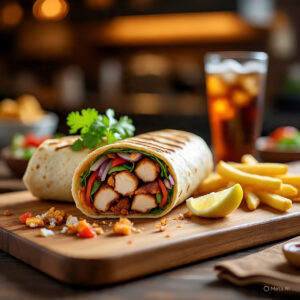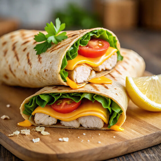 Juicy seasoned chicken paired with melted cheese, wrapped in a soft tortilla for a creamy and flavorful bite every time.