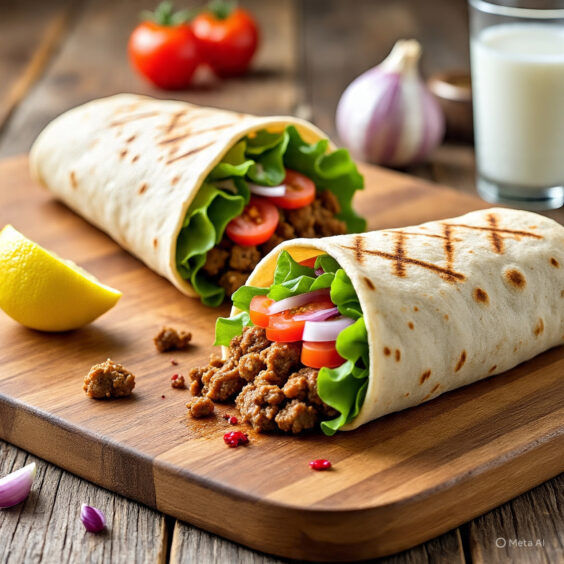 Juicy, seasoned doner meat wrapped with fresh veggies and a creamy house sauce in a soft tortilla — full of flavor and freshness in every bite.