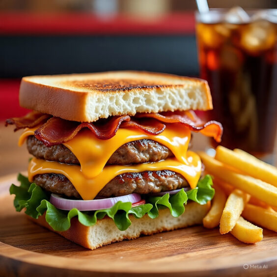 Juicy burger patty topped with melted cheese and served in a soft bun.Crispy edges with gooey cheese in every bite.