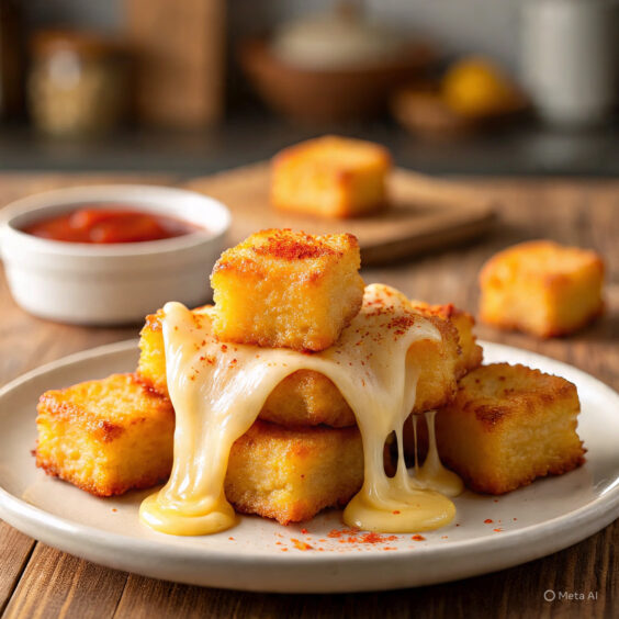 Crunchy on the outside, gooey and cheesy inside.