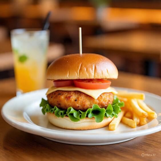 Mini chicken fillet burger with a crispy, juicy chicken patty.Served with fresh lettuce, sauce, and a soft bun.